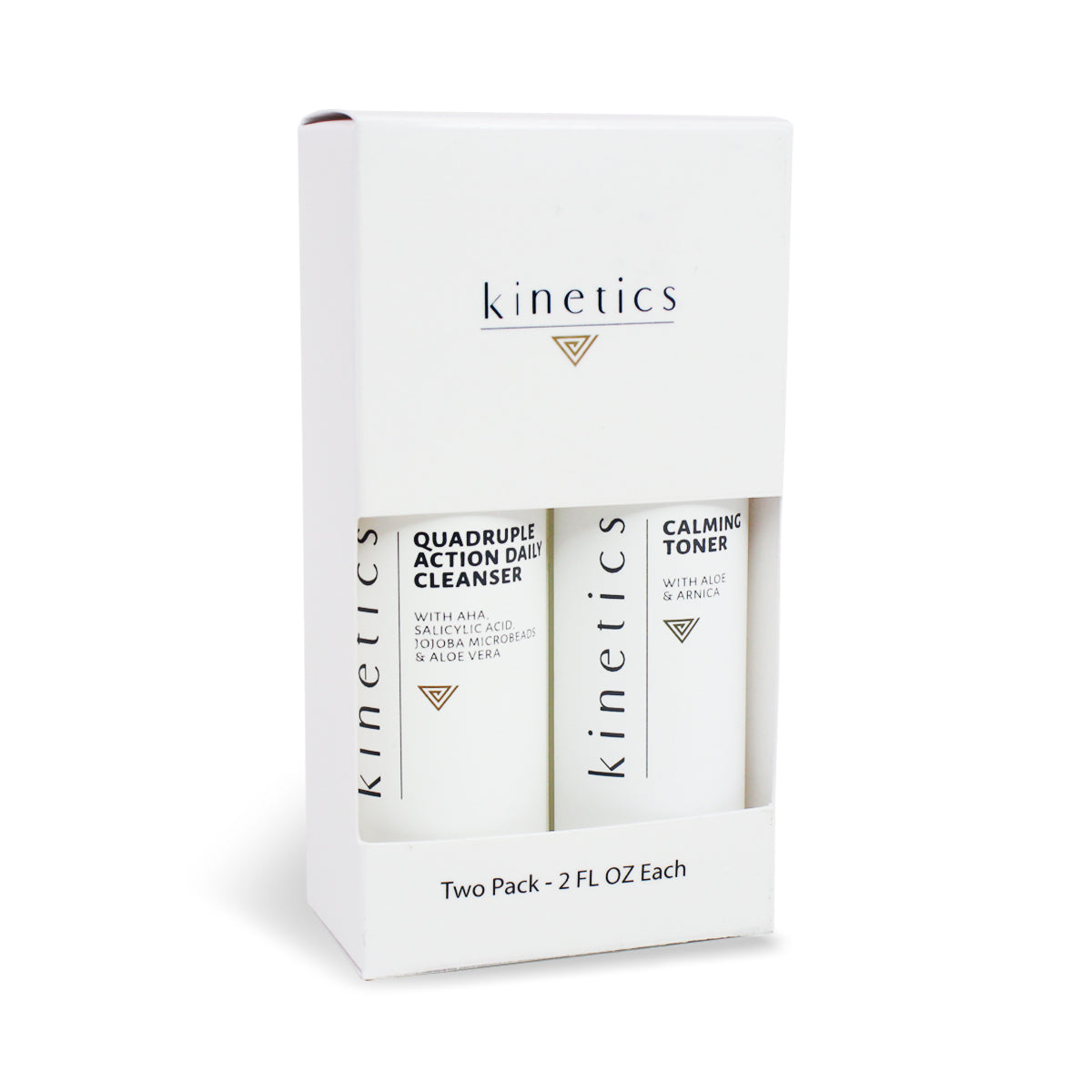 The “Quadruple action cleanser & Calming Toner 2 pack” contains our two best selling and most essential skin care products together in one pack. Gently exfoliate to remove all impurities and tone to hydrate the skin and reduce pore size. Great size for travel!
